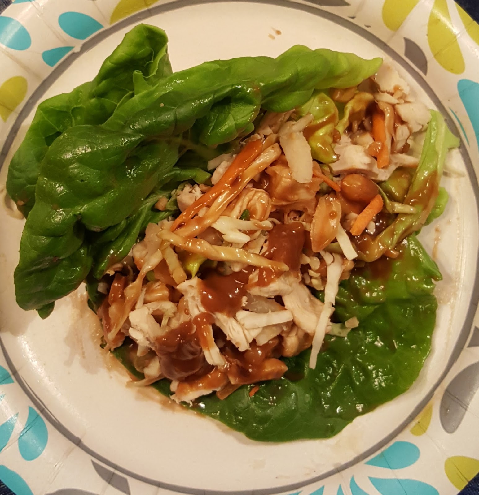 Thai Chicken Lettuce Wraps, shown without the flour tortilla